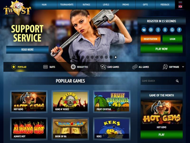 Playtech, Novomatic, Quickspin, Booongo, Belatra Games, Igrosoft and slotopaint提供支持,其游戏通过基于网页的即时游戏平台提供。此外,Twist Casino 还支持移动端游戏,玩家可以通过智能手机或平板电脑访问各种游戏。