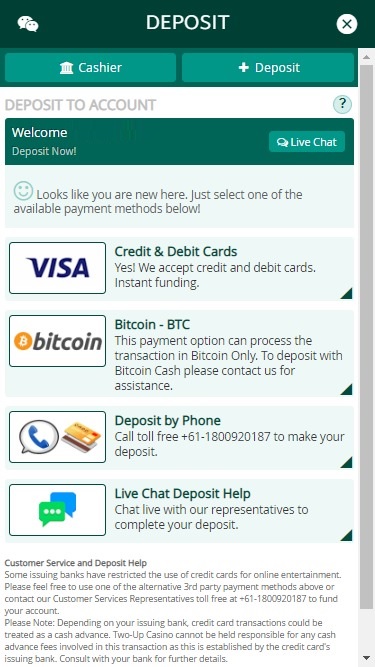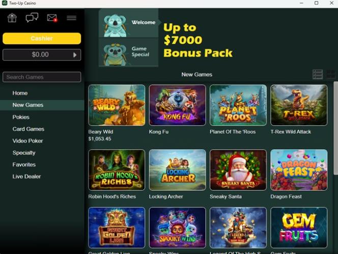 Two-Up Casino 由 Real Time Gaming, Visionary iGaming and Spinlogic Gaming提供支持,其游戏通过基于网页的即时游戏平台提供,无需下载任何繁琐的软件到电脑硬盘。该网站还全面支持移动端游戏,这意味着您可以通过智能手机或平板电脑访问您喜爱的老虎机游戏。