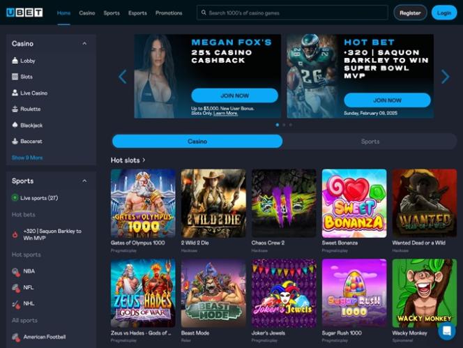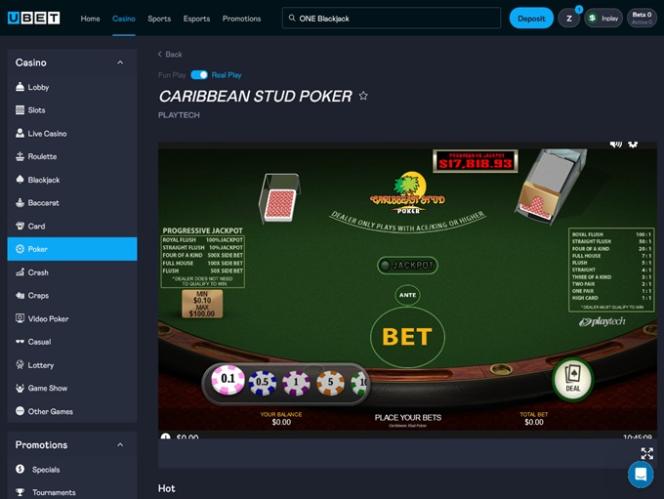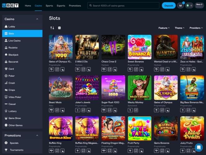 UBET 提供各种游戏,包括老虎机、真人娱乐场、轮盘赌、二十一点、百家乐、扑克、骰子游戏、掷骰子、视频扑克、休闲彩票、游戏节目等等。这里的一切井然有序,导航就像注册新账户一样简单。