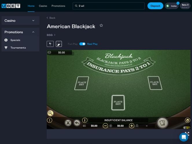 UBET Casino Blackjack (BetSoft)展开