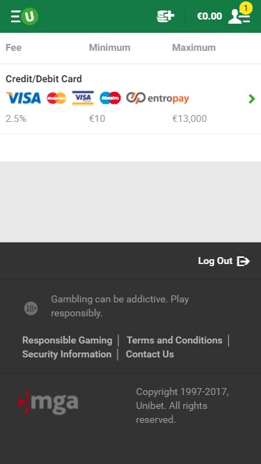 Unibet 的银行系统非常出色,支持 Visa、MasterCard、EntroPay、银行转账、Maestro、Skrill、Neteller 和 Paysafecard 等多种支付方式。Unibet 的提现没有限额,电子钱包支付可在 12 小时内到账。其他银行方式可能需要 1 到 3 个工作日才能完成。虽然希望有更多的存款和取款方式,但 Unibet 的速度非常快,足以弥补支付处理方面选项不足的缺陷。