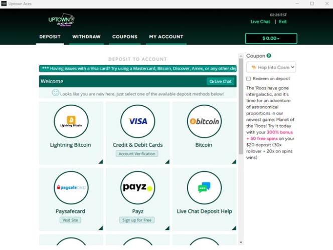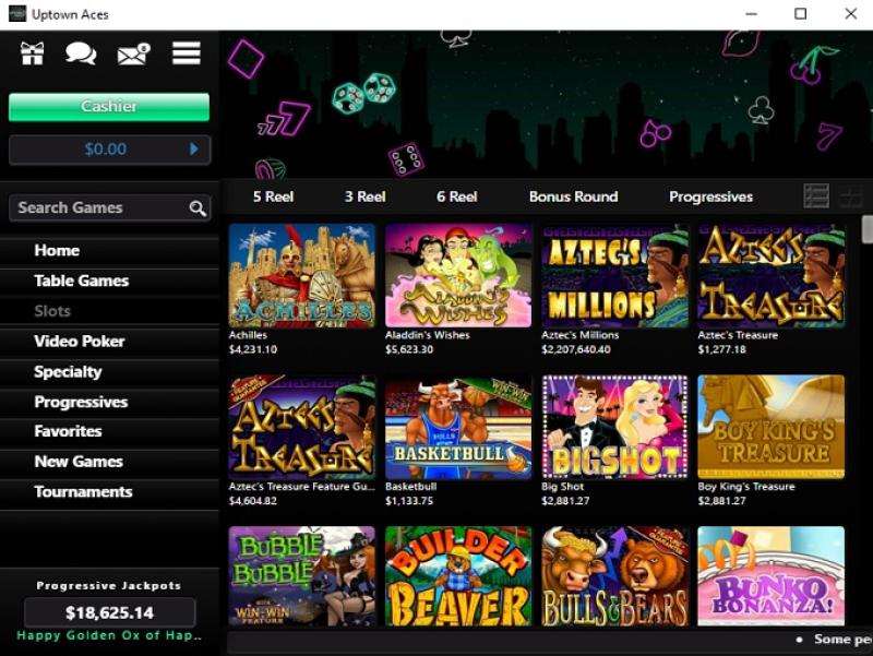Uptown Aces 是两家由 Real Time Gaming提供支持的 Deckmedia 赌场之一,提供即时游戏和可下载版本的赌场。