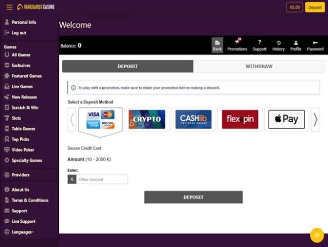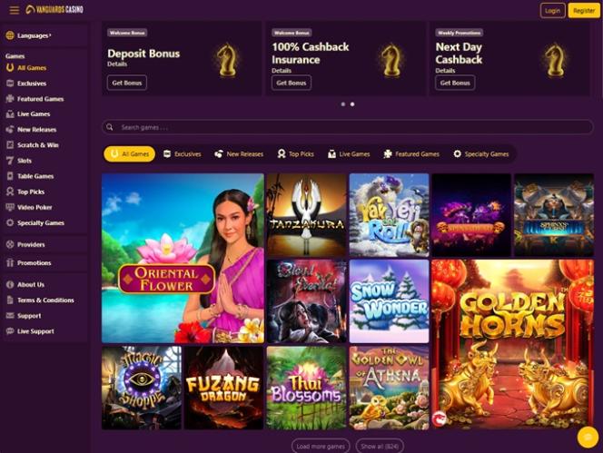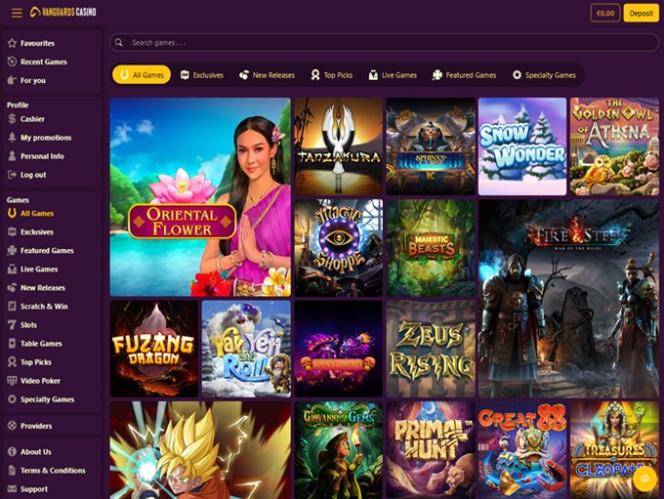 Vanguard Casino 由 BetSoft, Genesis Gaming, Rival, Saucify, Vivo Gaming, Spinomenal, Felix Gaming, Radi8 Games, Fresh Deck Studios, Woohoo Games, Qora Games, SmartSoft Gaming, Tom Horn Gaming, Genii, Wager Gaming, Dragon Gaming and Dragoon Soft提供支持,赌场游戏可通过下载软件或网页即时游戏平台进行游戏。此外,Vanguard Casino 还支持移动端游戏,让您随时随地畅玩各种游戏。其他游戏