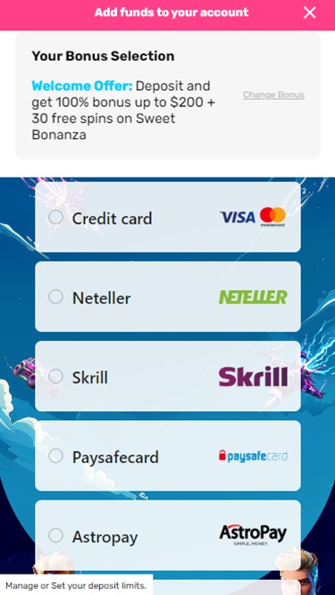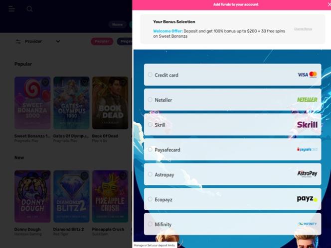此外,该网站在主页左上角设有一个可扩展菜单。您可以从那里访问所有数字游戏、真人荷官游戏、促销活动、VIP计划和帮助中心。