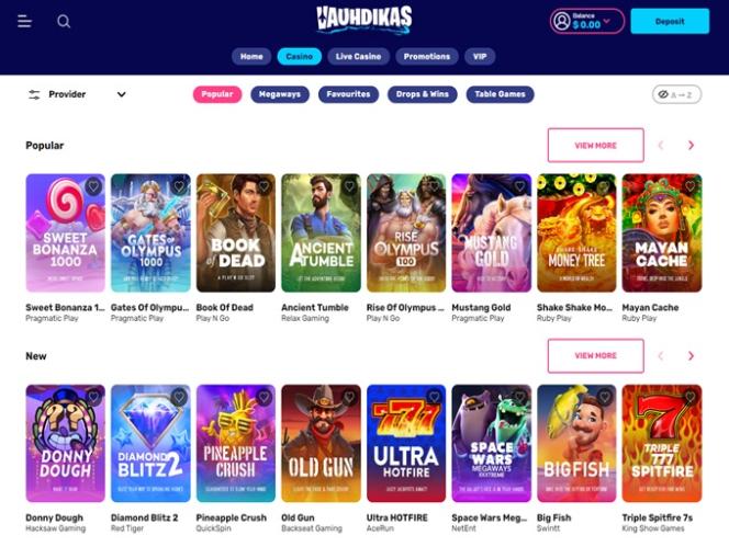 尽管我们赞赏 Vauhdikas 赌场团队在网站呈现和易用性方面所做的努力,但我们仍然需要审视任何博彩品牌最重要的部分。当然,我们指的是游戏选择和软件提供商的多样性。