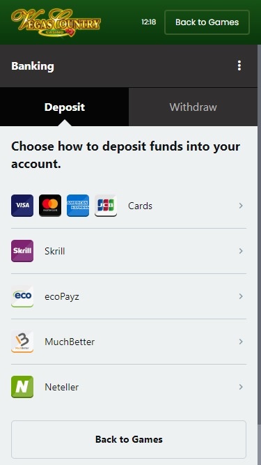 维加斯乡村赌场由 Microgaming, Evolution Gaming, Rabcat, Triple Edge Studios, Stormcraft Studios, Switch Studios, All41 Studios, Gameburger Studios, Neon Valley Studios, Real Dealer Studios, On Air Entertainment, Games Global, Foxium, Just For The Win and Slingshot Studios提供支持,该公司为赌场提供游戏平台和赌场游戏。玩家可以通过其网页平台或下载版(与网页版完全相同)访问赌场软件。此外,该网站还开发了移动版本,方便玩家通过智能手机或平板电脑进行游戏。Baccarat