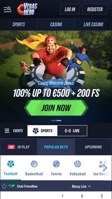 除了精彩纷呈的赌场游戏外,VegasHero 还推出了同样令人印象深刻的体育博彩选项。无论您喜欢投注足球、网球、篮球、电子竞技还是其他数十种体育项目,都能随时找到数百种投注选项,尤其是实时投注功能。