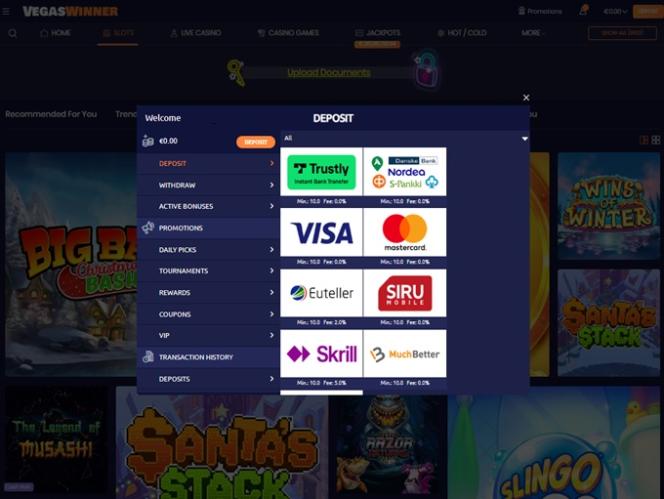 VegasWinner 赌场是一个在线博彩网站,由 SK Processing 于 2009 年创立。该赌场拥有丰富的游戏库、快速的奖金支付以及极高的奖金下注要求。因此,我们强烈推荐 VegasWinner 给所有支持该网站地区的用户。赌场资讯