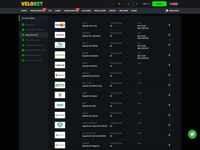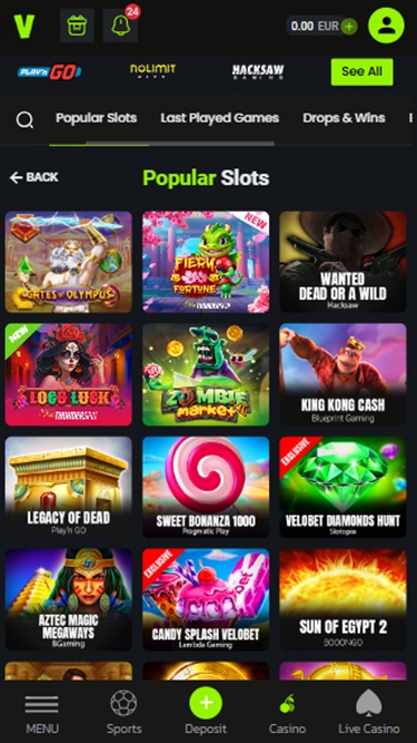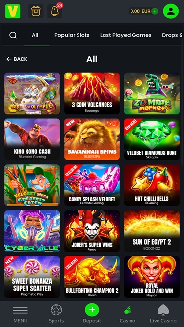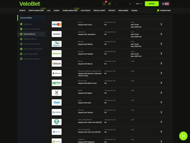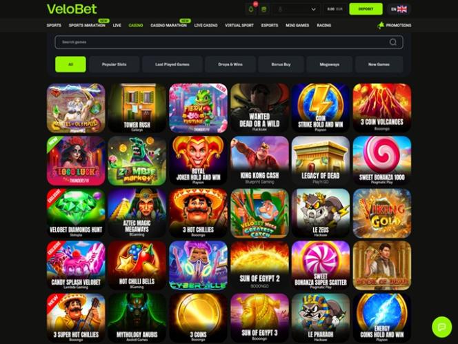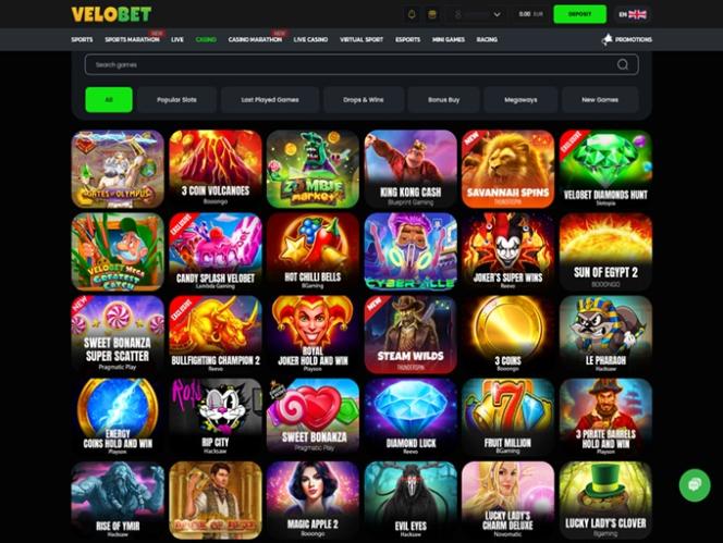 Velobet 的所有内容结构清晰,并分为以下类别:体育、马拉松、真人游戏、赌场、真人娱乐场、虚拟体育、电子竞技、迷你游戏和赛车。玩家可以选择自己喜欢的游戏类型,轻松享受这家在线赌场提供的乐趣和娱乐。