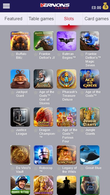 Vernons Casino 由 Playtech提供支持,拥有丰富的游戏库,涵盖多种游戏。您可以通过网页平台直接在浏览器中畅玩。此外,我们还提供移动端网站,方便随时随地畅玩。