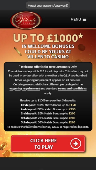 以下是 Villento 拉斯维加斯赌场当前提供的促销活动列表。