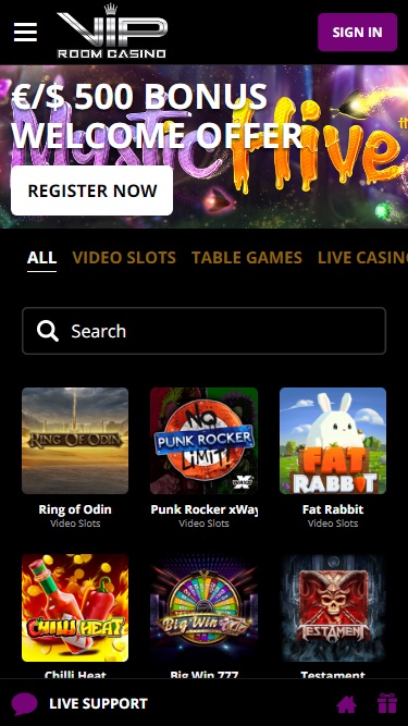 VIP Room Casino 由 Microgaming, Net Entertainment, BetSoft, 1x2gaming, Big Time Gaming, ELK Studios, Evolution Gaming, Ezugi, Habanero Systems, iSoftBet, Play'n GO, Quickspin, Relax Gaming, Vivo Gaming, Yggdrasil, Endorphina, GameArt, Booming Games, PlayPearls, Pragmatic Play, Red Tiger Gaming, Spinomenal, Kalamba, Triple Edge Studios, Evoplay, SmartSoft Gaming, Games Global, Wizard Games, Pariplay, Tom Horn Gaming, Xplosive Slots, BF Games, HollywoodTV, Ganapati, SlotVision and PlayAce提供支持,其游戏通过基于网页的即时游戏平台提供,只需通过您的网络浏览器即可加载,无需下载繁琐的软件。该网站还内置了移动兼容性,方便您通过智能手机或平板电脑进行游戏。