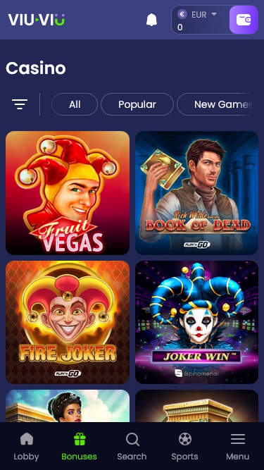 为了在手机上轻松畅玩所有游戏,您可以在 iOS 和 Android 设备上安装浏览器内置应用程序。这将为您在 Viu Viu 赌场带来流畅的博彩体验。桌面用户也可以在浏览器上安装相同的应用程序,以简化流程。