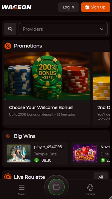 促销标签带有吸引人的选项,例如针对首次玩家的介绍性优惠,可与 Wageon Casino 的前三笔存款一起使用。