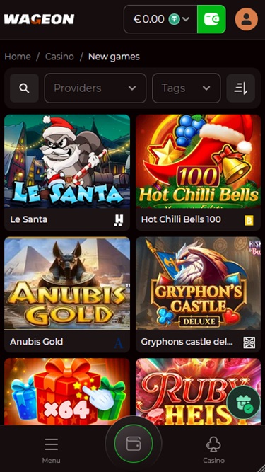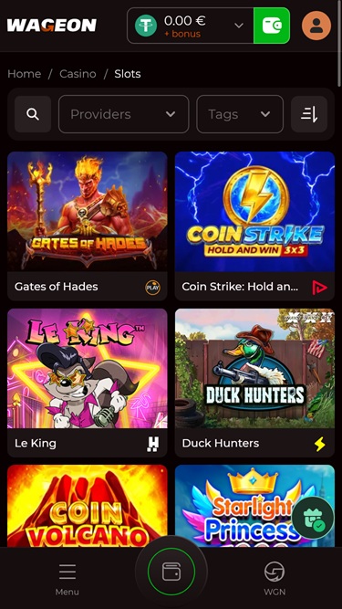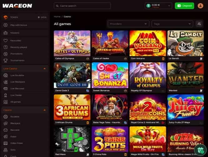 Evolution Gaming、Net Entertainment、Endorphina、No Limit City、Spinomenal、Platypus Gaming和许多其他在线赌场软件公司正在为 Wageon Casino 提供内容。