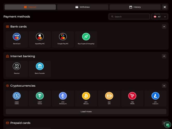 在这里,您可以尝试赌场游戏,例如轮盘赌、二十一点、百家乐、视频扑克、真人娱乐场选项、老虎机、崩溃、即时赢、基诺、彩票、宾果游戏、刮刮卡、虚拟体育等。