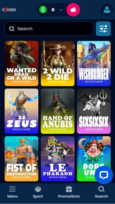体育板块提供足球、篮球、网球、冰球、国际象棋、一级方程式赛车、排球、FIFA:Volta、eHorse Racing、点球大战、匹克球、手球以及众多其他美式体育博彩选项。如果您喜欢博彩,一定要去看看,因为 Wagered Casino 提供来自世界热门联赛的精彩比赛和赛事。