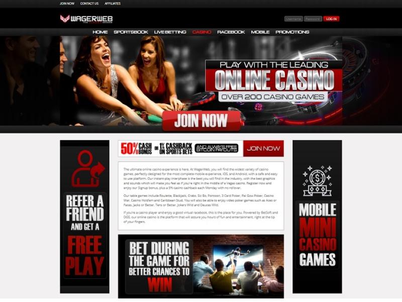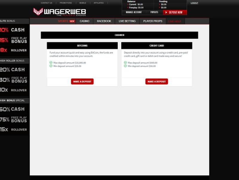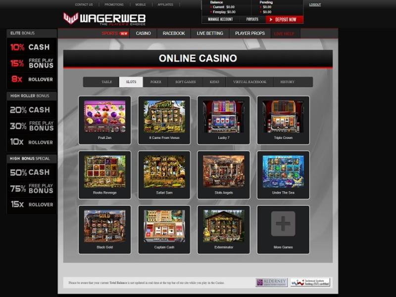 WagerWeb 的玩家根据下注金额赚取积分。500 个积分可以在赌场兑换 1 美元现金。