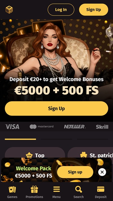 主页顶部预留了一个滚动横幅,其中展示了一些您可以在这里领取的最激动人心的促销活动。下方列出了网站上最受欢迎和最新的游戏,以及一些最受欢迎的真人娱乐场游戏。