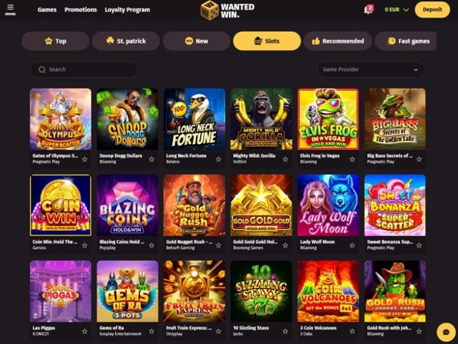 说到 WantedWin 赌场,我们可以看到运营商投入了大量资源,致力于为客户提供卓越的游戏体验,因为在这里玩游戏可以让你浏览超过 100 家不同的软件开发商。其中包括 Pragmatic Play、Microgaming、Relax Gaming、Quickspin 和 Nolimit City 等知名品牌。