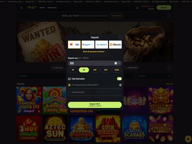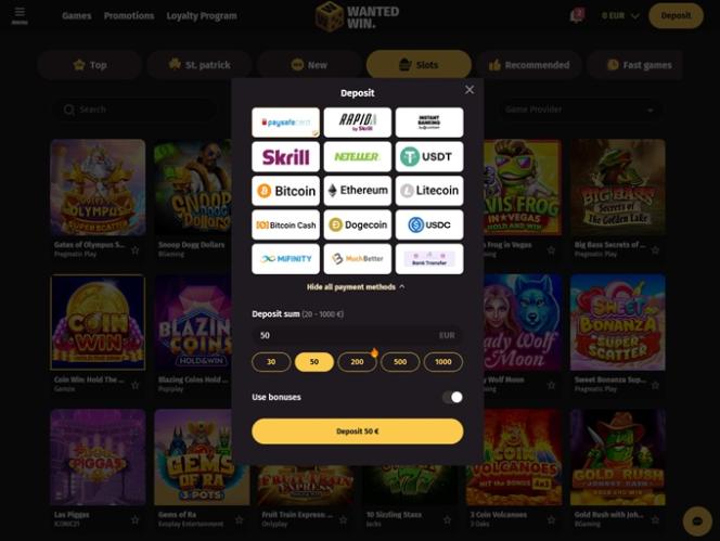WantedWin 赌场不仅拥有激动人心的会员计划,还为玩家提供了众多精彩的促销和奖金。新玩家将获得极具诱惑力的迎新优惠,而老玩家则可以领取各种其他奖金。