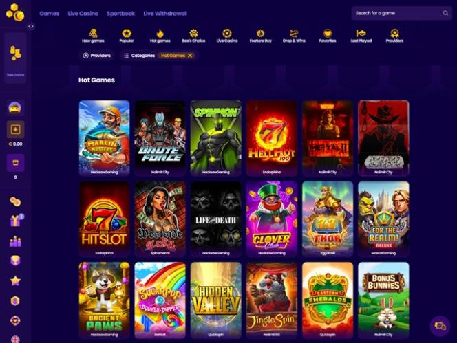 最后,玩家可以探索丰富的钓鱼和骰子游戏。Wazbee Casino 为玩家准备了令人印象深刻的游戏阵容,并定期更新游戏库,推出新游戏。