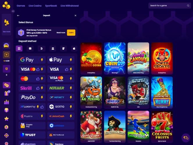 我们很高兴地看到该网站已针对 iOS 和 Android 设备进行了全面优化,玩家还可以使用保加利亚语、丹麦语、德语、希腊语、英语、西班牙语、芬兰语、法语、印地语、印尼语、意大利语、挪威语、波兰语、葡萄牙语和俄语浏览整个赌场。