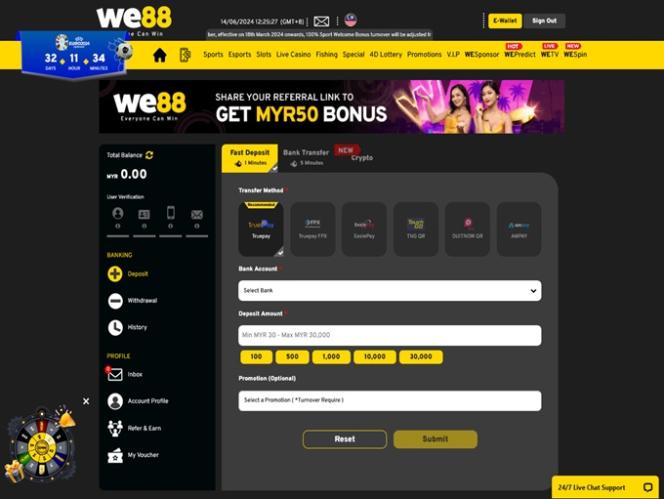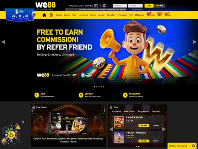 WE88 赌场拥有库拉索博彩管理局颁发的许可证标识,但该标识目前尚未与任何官方持牌机构关联。该品牌仅接受马来西亚玩家,诚邀他们加入,体验精彩纷呈的游戏。