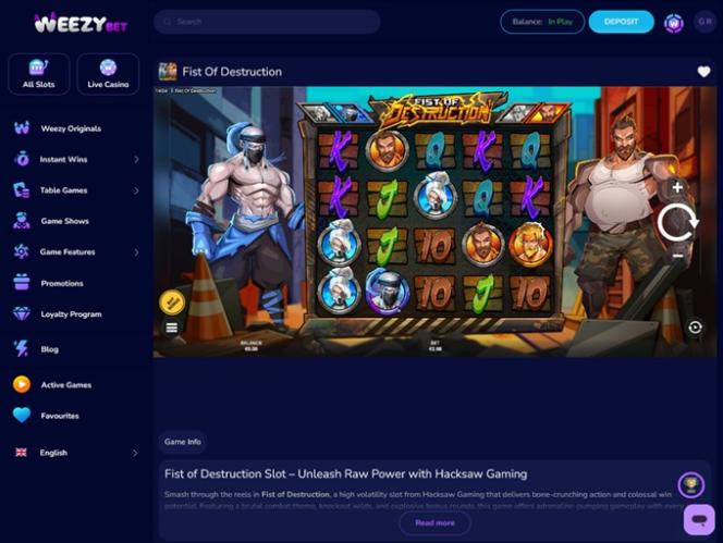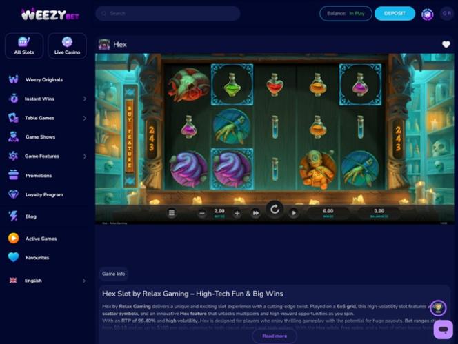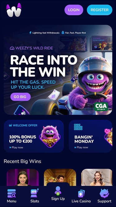 WeezyBet.com 是一个用户友好的在线赌场,可通过个人电脑和移动设备访问。因此,无论您喜欢在电脑上赌博还是在旅途中畅玩赌场游戏,您都可以在所有可用平台上享受快速的加载时间和美观的界面。