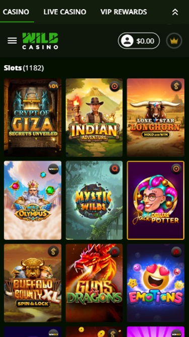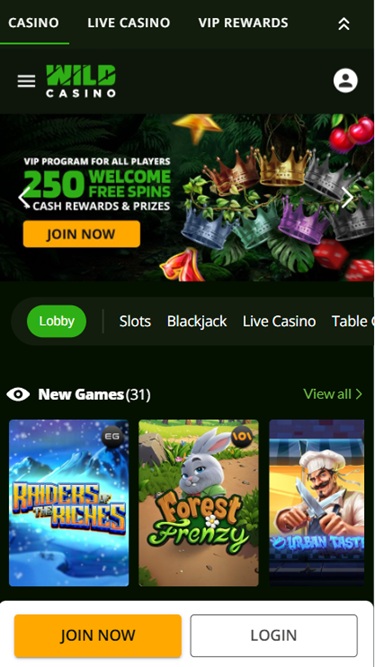 Wild Casino 由 BetSoft, Rival, Visionary iGaming, Betgames, Arrows Edge, Nucleus Gaming, BGAMING, Concept Gaming, Fresh Deck Studios, PureRNG, Digital Gaming Solutions, Wager Gaming, Dragon Gaming, FlipLuck, Dragoon Soft and Urgent Games提供支持,其赌场游戏通过网页平台提供,可通过电脑的互联网浏览器加载。这种方式非常方便,因为它占用更少的电脑资源,并且允许您在任何设备上进行游戏。虽然也提供下载版本,但除非您的网速较慢,否则我们不建议您下载。此外,它还内置了移动设备兼容性,方便您在智能手机或平板电脑上玩游戏。