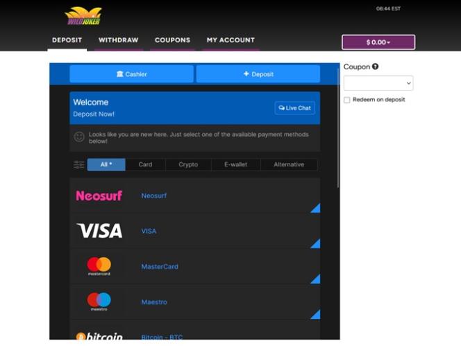 Wild Joker 赌场由 Real Time Gaming提供支持,其游戏通过互联网平台提供,无需下载任何软件。其他一些 RTG 赌场也提供可下载的软件,但如今我们认为这已不再必要,因为浏览器版本已经足够。Wild Joker 也支持移动游戏,您可以在智能手机或平板电脑上进行博彩。
