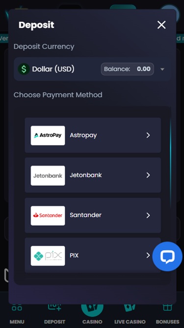 赌场收银台支持多种常用支付方式,例如支付卡、热门电子钱包和其他在线支付选项。遗憾的是,不支持加密货币。