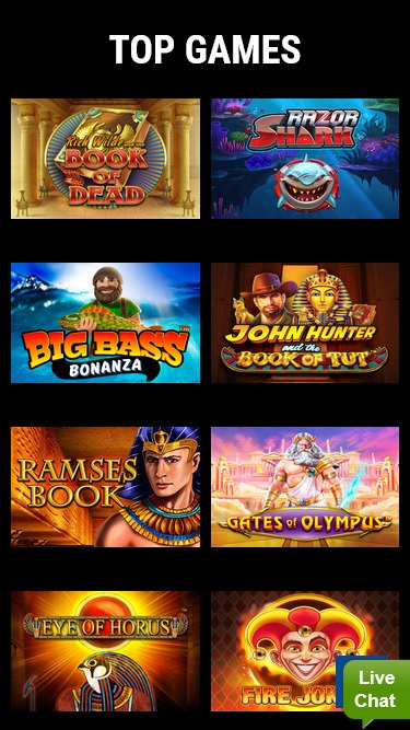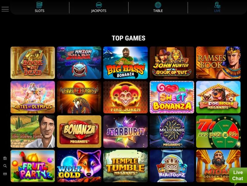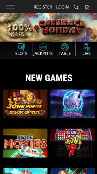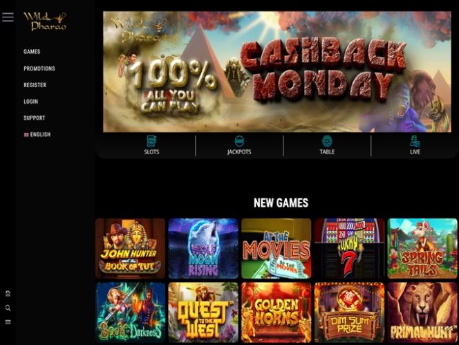 赌场界面简洁;黑色背景模板上,有一个埃及法老的大型横幅,游戏缩略图整齐地排列着。注册过程很快,但总体印象是,运营商可以考虑对平台进行现代化升级,并添加更多设计更精良的功能。