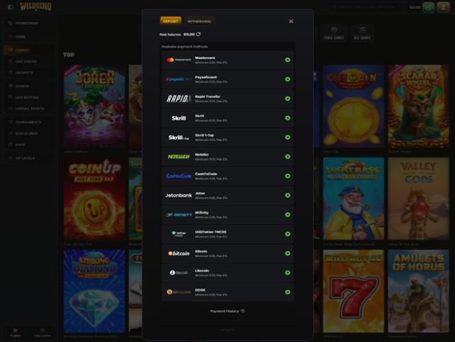 在支付方式方面,该品牌允许玩家使用传统和现代的存款和取款方式。Visa、 Mastercard 、 Skrill 、 Neteller 、 Jeton 、 MiFfinity和银行电汇都是常规支付方式。此外,玩家还可以使用比特币、莱特币、狗狗币和泰达币等现代加密货币作为有效的支付选项。