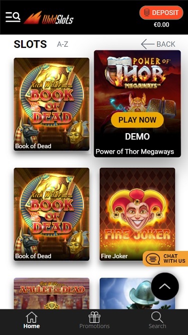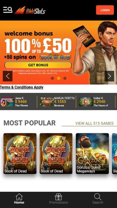 WildSlots 提供众多视频和经典老虎机游戏,并汇聚了世界顶级开发商的游戏。赌场游戏库中的游戏包括《终结者2》、《南方公园》、《Paco and the Popping Peppers》、《Safari Sam》、《科学怪人》等等,还有许多您可能从未听说过的游戏。赌场也为玩家提供累积奖金,尽管其中很多来自 Betsoft,并且已被证明无法赢取。此外,赌场还提供移动老虎机,方便您在智能手机或平板电脑上畅玩。