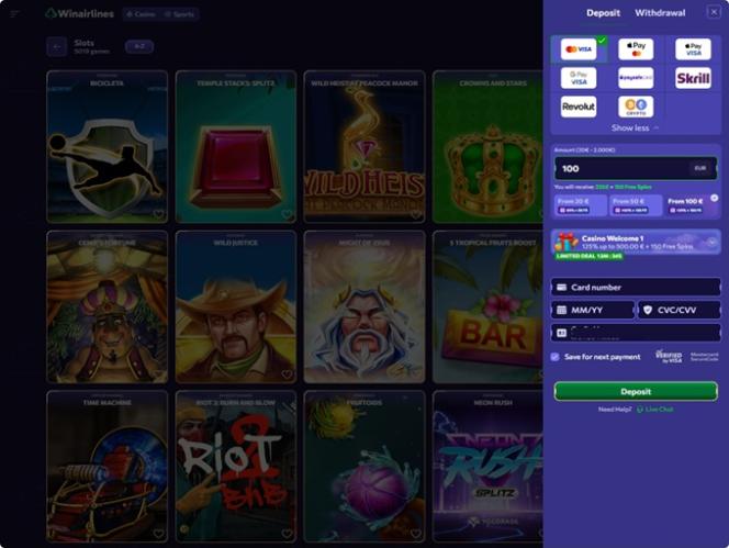准备登上豪华飞机,体验由一流机组人员为您打造的舒适空中之旅。Winairlines 是一家融合现代科技优势的在线赌场,无论您是赌场常客还是体育博彩爱好者,都能在这里找到乐趣。此外,Winairlines 团队还致力于为加密货币爱好者等群体优化产品,提供更佳体验。