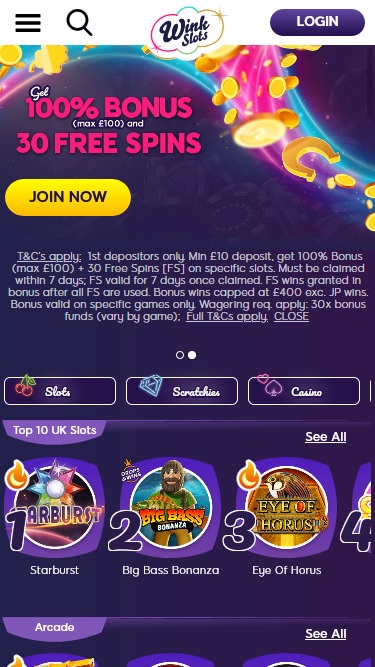 Wink Slots 的积分系统比较有意思,每下注 16 英镑即可获得 1 点积分。不过,积分兑换率没有列出,所以很难确定游戏的整体情况。