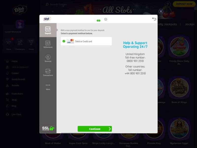 Wink Slots 网站设有“负责任博彩”版块,玩家可以在此找到有关如何对抗问题赌博行为的信息。此外,该网站还提供自我隔离和投注限额方面的帮助,这些服务是所有博彩网站都应该提供的。客服人员每周 7 天、每天 24 小时通过电子邮件和电话提供。网站客服人员回复帮助请求迅速,并解答了我遇到的所有与奖金条款和条件相关的问题。Wink Slots 使用 128 位 SSL 加密技术保护玩家信息,该技术会在您的计算机和赌场服务器之间传输您的个人和财务数据时对其进行加密。这是一项关键的安全功能,我们很高兴看到 Wink Slots 为客户提供这项服务。