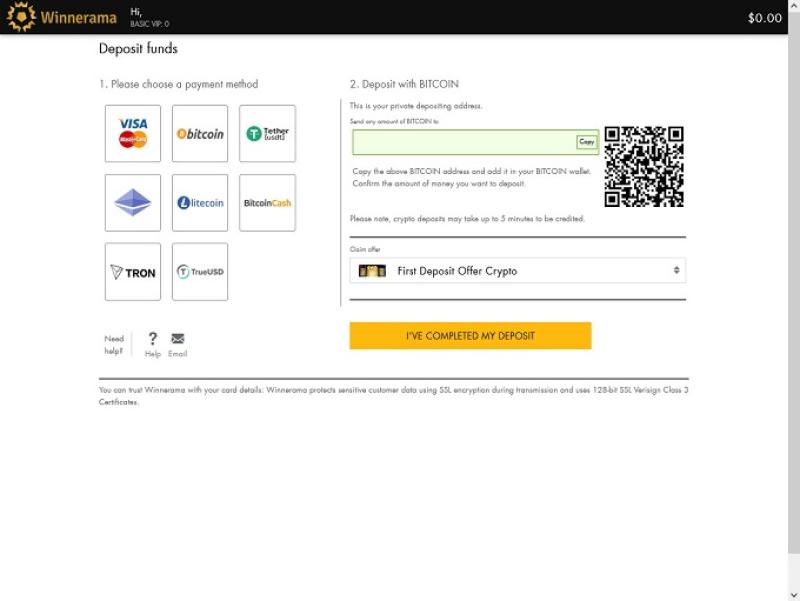 Winnerama 是一家支持加密货币的在线赌场,支持多种加密货币支付方式。对于传统玩家来说,即使他们还没有转向加密货币博彩,他们也可以使用标准的银行存款和取款方式,例如支付卡和银行电汇。