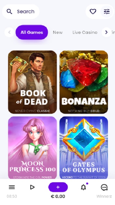 Winnerz Casino 的真人荷官部分提供一些最受欢迎的真人娱乐场游戏:Sweet Bonanza Candyland、Lightning Roulette、Immersive Roulette、Craps Live、Lightning Dice、Blackjack、Power Blackjack、Gonzo's Treasure Hunt、First Person Roulette、 Casino Hold'em 、Lightning Baccarat、Infinite Blackjack、Free Bet Blackjack、2 Hand Casino Hold'em、Dragon Tiger、Baccarat Control、Craps First Person、Side Bet City、Double Ball Roulette、Three Cards Poker、 Caribbean Stud Poker 、RNG First Person Top Card、Casino Malta Roulette、French Roulette Gold、RNG First Person Baccarat、RNG First Person Dragon Tiger、First Person Lightning Blackjack、Blackjack、Mega Roulette、Mega Wheel、Roulette、Speed Baccarat、Bac Bo、Peek Baccarat 等等。