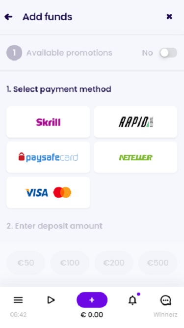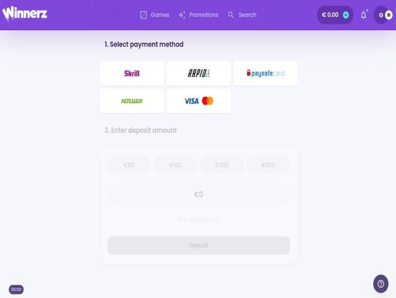 - 出于安全原因,Winnerz Casino 可能会随时限制账户存款。