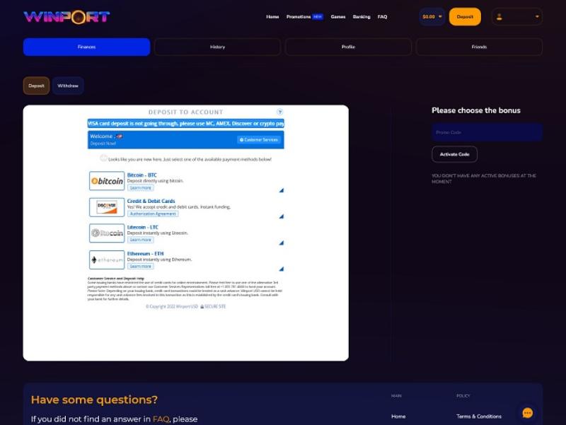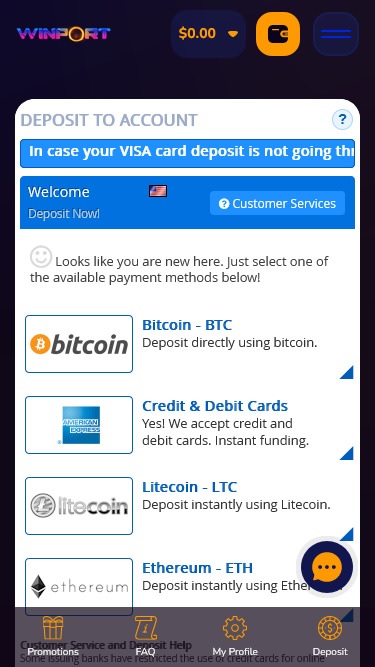 WinPort Casino 是一家对加密货币友好的在线赌场,根据库拉索法律获得许可,面向美国、加拿大、新西兰、澳大利亚和英国的赌客。