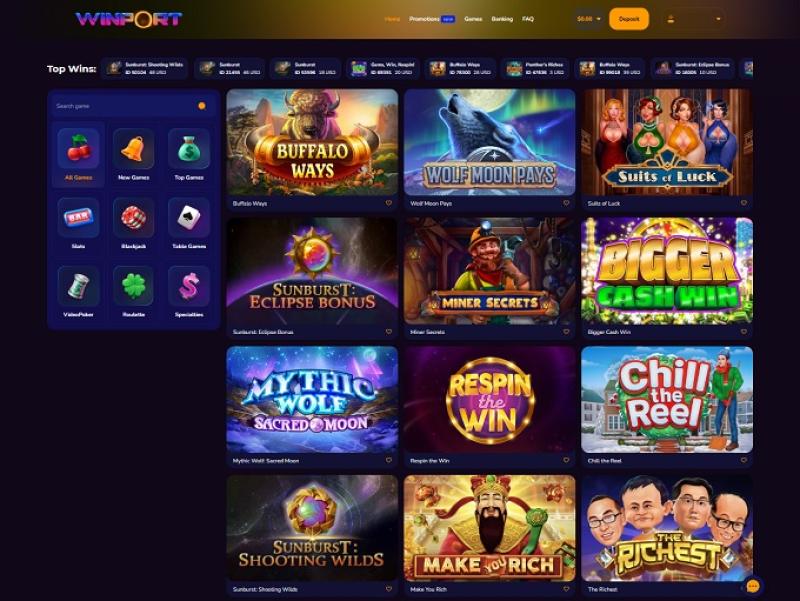 WinPort 与 Rival、Nucleus Gaming 和 Dragon Gaming 合作,提供各种热门类别的在线赌场游戏,例如: