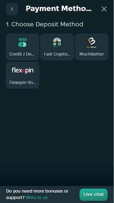 在银行选项方面,您可以选择使用 Visa、 MasterCard 、Skrill、Neteller、Ecopayz 和 Neosurf 等热门方式在 Wins Royal Casino 存款或取款。加密货币支付也是一个可行的选择,因为它已成为玩家存款和取款的一种非常流行的方式。