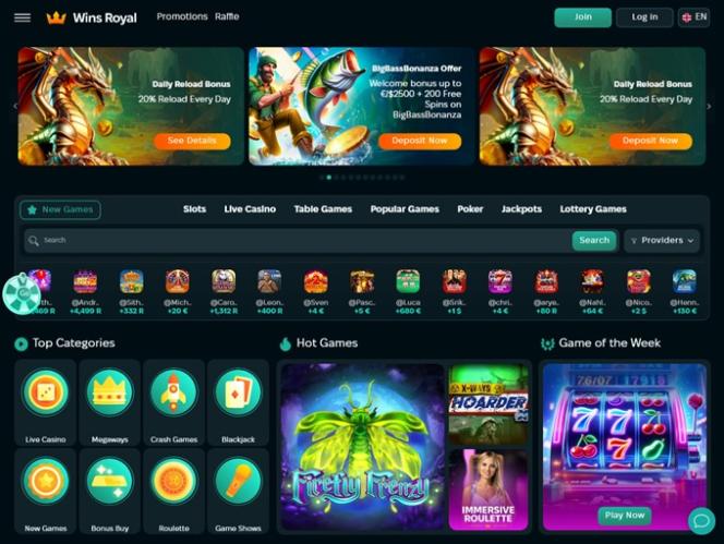 Wins Royal 提供一些超值的赌场奖金。玩家可以领取三倍机会迎新奖金、每周和每日免费旋转、充值奖金以及每日现金返还。