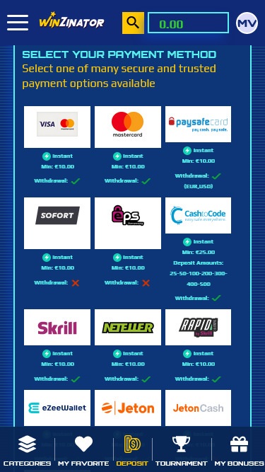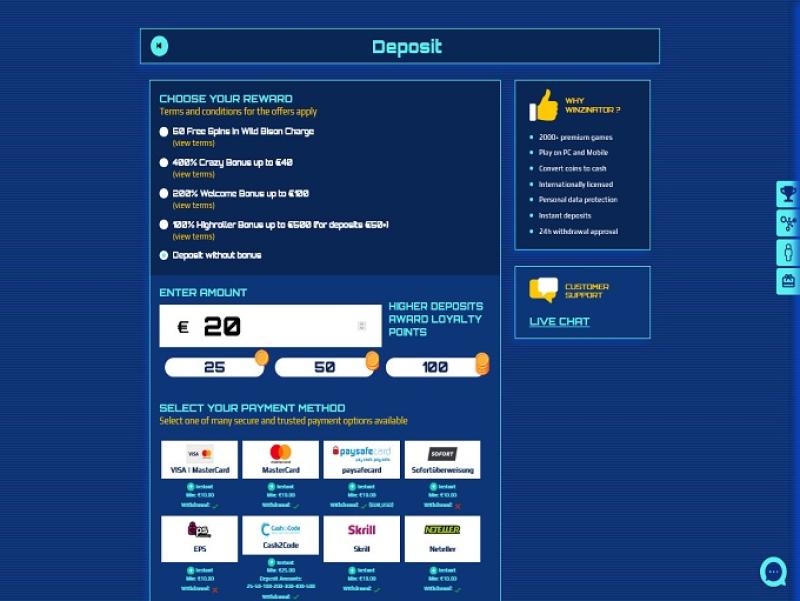- Winzinator Casino 保留收取提款费和不活动费的权利。