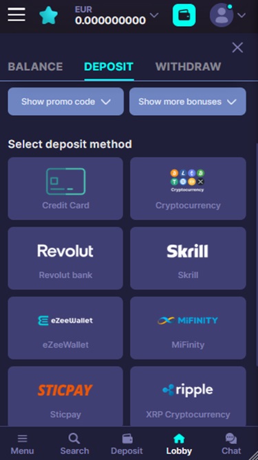 如上所述,该网站采用与同一赌场网络旗下其他品牌相同的布局和结构。主要类别包括:大厅、促销和VIP,并包含顶级博彩内容和诱人的服务。