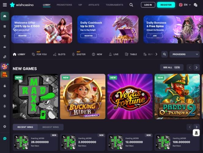 WishCasino 是一家在线赌场,由一家经验丰富的公司运营和拥有,该公司根据库拉索法律成立,并由库拉索政府监管和许可。该网站面向来自加拿大、挪威、芬兰、新西兰和爱尔兰的玩家,并提供英语、德语、芬兰语和西班牙语的本地化版本。