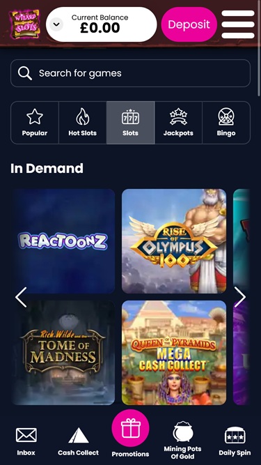 Wizard Slots 由 Microgaming, Net Entertainment, Playtech, BetSoft, 1x2gaming, Barcrest, Big Time Gaming, ELK Studios, EYECON, Genesis Gaming, iSoftBet, lightningboxgames, Novomatic, playson, Quickspin, Rabcat, Rival, Saucify, Yggdrasil, Booming Games, Pragmatic Play, HungryBear Gaming, Games Global, Wizard Games, 2by2 Gaming, Aristocrat, CT Interactive, Leander Games, NextGen, OpenBet, Pariplay, Push Gaming, Tom Horn Gaming, Gaming Realms, Genii, CORE Gaming, Bally Wulff, Iron Dog Studio, Foxium, Just For The Win, Storm Gaming Technology, Lost World Games, Half Pixel Studios, Area Vegas and RAW iGaming提供支持,其游戏通过基于网页的即时游戏平台提供给用户。该赌场也支持移动端游戏,您可以通过智能手机或平板电脑登录并下注。