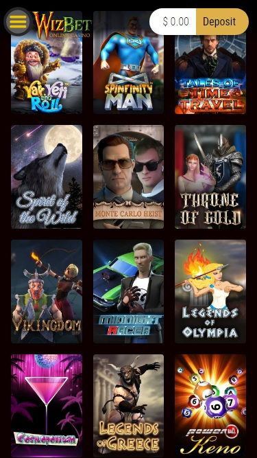 WizBet Casino 由 BetSoft, Rival and Saucify提供支持,其软件既提供可下载版本,也提供即时游戏模式。喜欢手机游戏的玩家也会发现,WizBet Casino 拥有一个优秀的移动网站,提供大约 30 款游戏。其他游戏